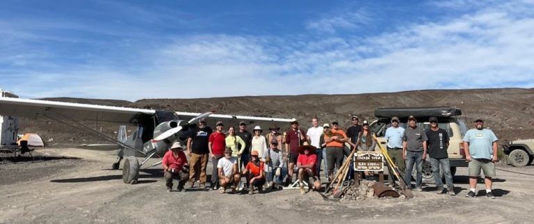 “Fifteen volunteers braved hours of rutted out 4×4 roads to come help rebuild Chicken Strip in Saline Valley on November 5 and 6,” RAF California Liaison Katerina Barilov reported. It’s ironic that an airstrip in the driest place in North America suffers occasional flooding, but a regional deluge in July created washou