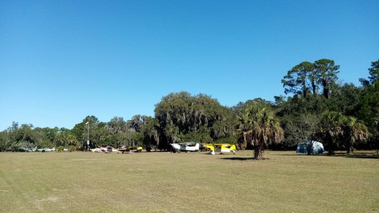 Creighton Island owner Frank Williams welcomed RAF volunteers the weekend of February 17-19 to cut what RAF Florida Liaison Bobby Capozzi called “an untold number of trees” encroaching along the runway. In addition to initial efforts to widen the runway, the plan is to run millable timber through the vintage sawmill th