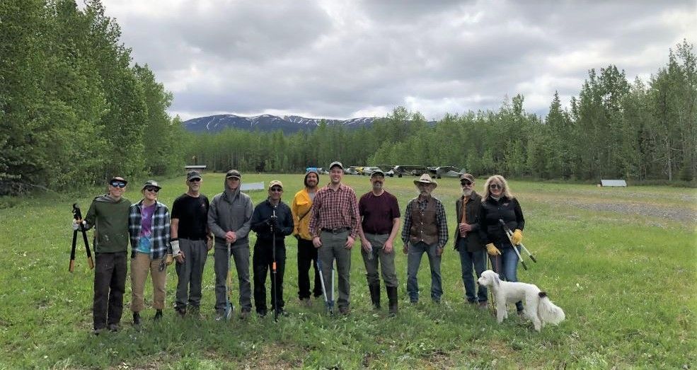 RAF Alaska Liaison Al Clayton reports that on the June 16-17 weekend, ten RAF and EAA volunteers in six aircraft based overnight at his Fireweed (0AK8) airstrip in preparation for the work party he organized at May Creek, (MYK), about 11nm southeast of Fireweed, (and McCarthy, PAMX.) “We enjoyed good food, beverages,