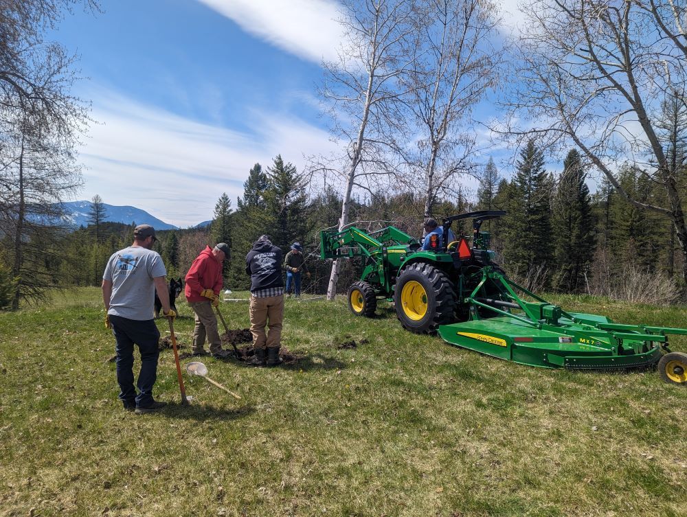 Seventeen volunteers tackled annual spring cleanup and readiness at Ryan Field near West Glacier the first weekend of May. Working throughout typical Montana spring weather, they added eight tie-downs, set out chairs and picnic tables, cleaned bear boxes, removed brush, cut trees, bucked and stacked firewood, and seede