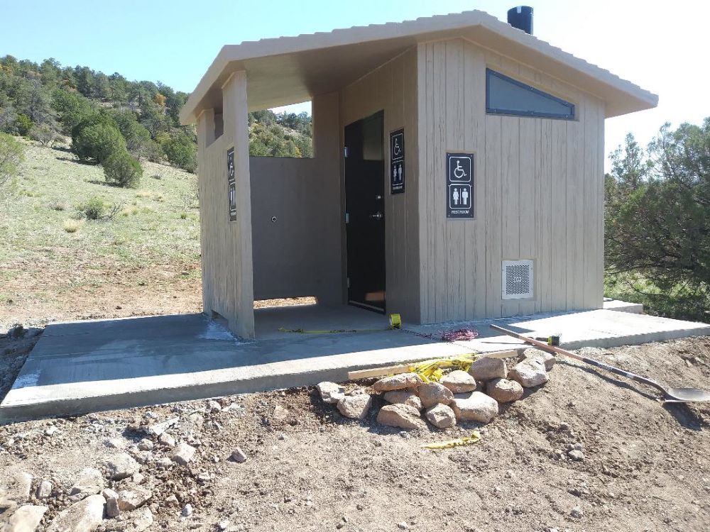 Volunteers continue making improvements at the USFS airstrip at Sacaton, New Mexico, NM16 as part of the Challenge Cost Share agreement with the US Forest Service. Organized by RAF New Mexico Liaison Ron Keller, RAF and New Mexico Pilots Association volunteers poured the concrete pad for the vault toilet recently, in s