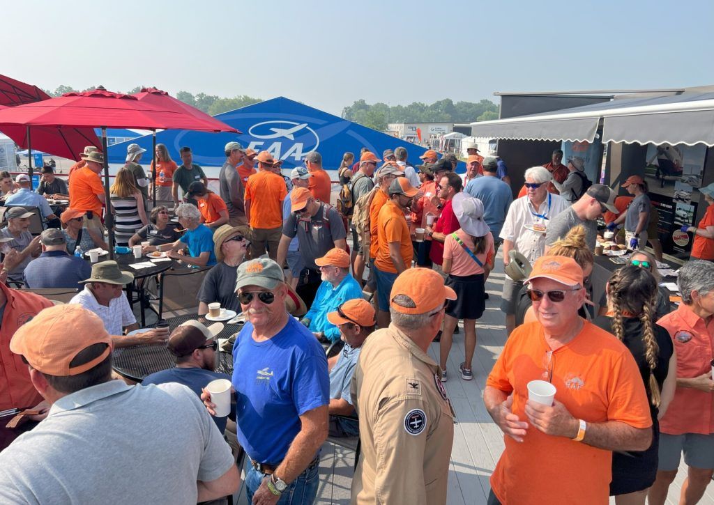 The Daher/Kodiak booth became a sea of orange earlier that day, as folks sporting RAF logo wear turned out for the “family photo.” A lively game of heads-or-tails was played, and an RAF logo item was given away.