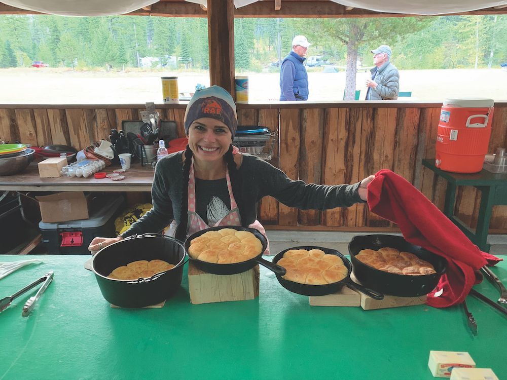 A person doesn’t forget Rachel Thompson. Wife of RAF Oklahoma Liaison Steve Thompson, she steps out of his gleaming Cessna 180 in the middle of the backcountry, unloads all the fixin’s for a week’s worth of baking, and gets to work. Within an hour, the aroma of something wonderful baking is in the air. If the task is clearing brush, Rachel exchanges oven mitts for work gloves, and works as hard as everyone else.