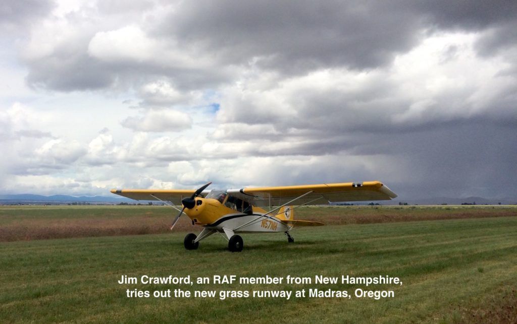 Despite unseasonably cold and stormy weather, several hearty pilots and their passengers attended the RAF Fly-In Saturday, June 10 at Madras, Oregon (S33) to inaugurate the new grass runway. An early morning snow shower, followed by scattered thunderstorms throughout the weekend conspired to keep less adventuresome aviators away, but pilots came from as far away as New Hampshire, joining several from Washington, for the fun.
