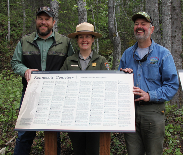 RAF Alaska Liaison Al Clayton, a longtime member of Pioneers of Alaska, had participated in the panel installations, and gathered with members of the Pioneers, the Flying Rotarians, local community members, and representatives of the National Park Service for the June 19 dedication ceremony, co-hosted by the Pioneers of Alaska and Wrangell-St. Elias National Park and Preserve.