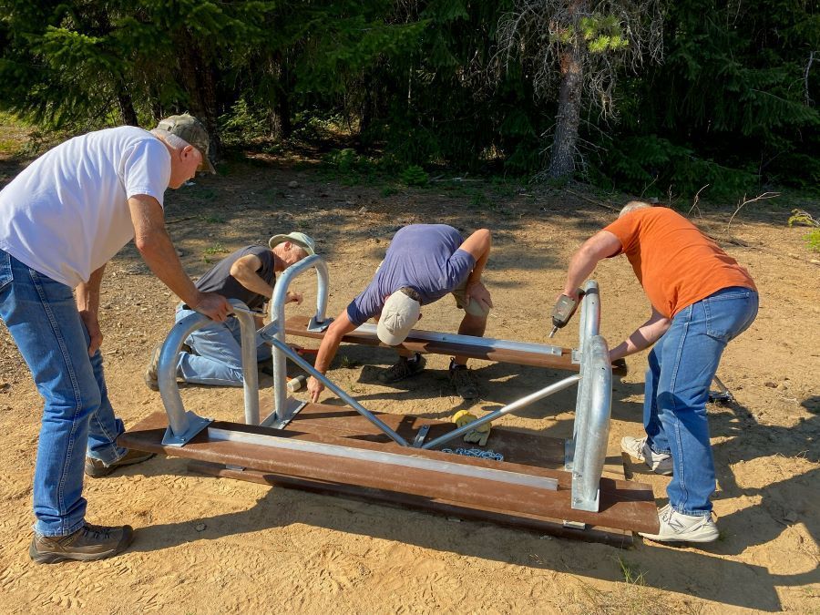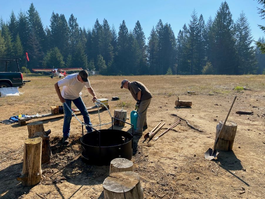RAF supporters have been interested for some time in improving the primitive camping area. Thanks to the efforts of RAF Oregon Ambassador Bill Ables, the USFS directed a portion of this year’s federally allocated funds to initiate improvements, including purchase of a new all-weather picnic table and RAF fire ring that were shipped to Mayes. Several RAF supporters and Oregon Pilot’s Association members gathered at Toketee in early August to clean up the camping area and install the table and fire ring. In addition, RAF member Pete Gauthier had constructed and donated a beautiful timber picnic table the crew helped install.