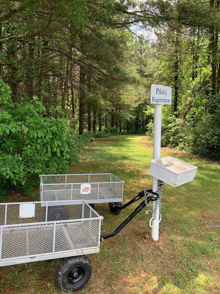 During the past two years Noble County Airport Manager Ed Crock completely leveled, rolled, created drainage, and seeded the area near the trail entrance to adjacent Wolf Run Fly-In campground, providing aircraft parking on turf for campers. RAF Ohio Liaison Christine Mortine reports that it’s in excellent condition. Mr. Crock also designed and built the attractive pilot sign in box and post. The RAF provided a new windsock.